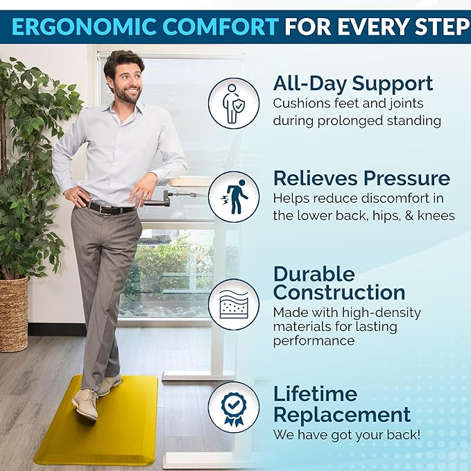 ComfiLife Anti Fatigue Floor Mat – 3/4 Inch Thick Kitchen Mats for Floor, Standing Desk Mat, Kitchen Rug – Comfort at Home, Office – Durable – Stain Resistant – Non-Slip Bottom (20" x 39", Mustard)