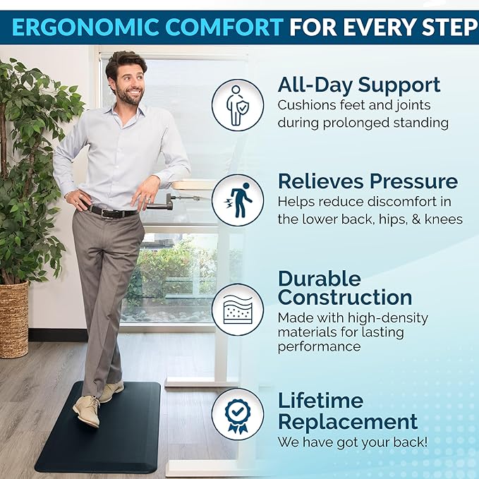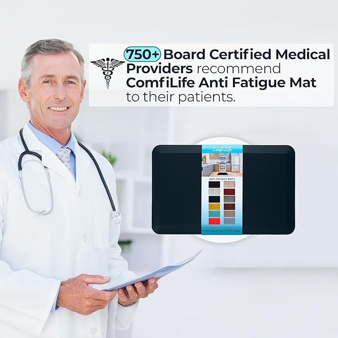 - Exceptional Comfort Anti Fatigue Mat: ComfiLife kitchen mats for floor enhance comfort while standing. It is professionally engineered and can be used as padded kitchen mat or for your standup desk that will not lose support over time. Ideal for use as a standing desk mat., kitchen mats cushioned anti fatigue, kitchen floor mat or anti-fatigue mats for kitchen floor.