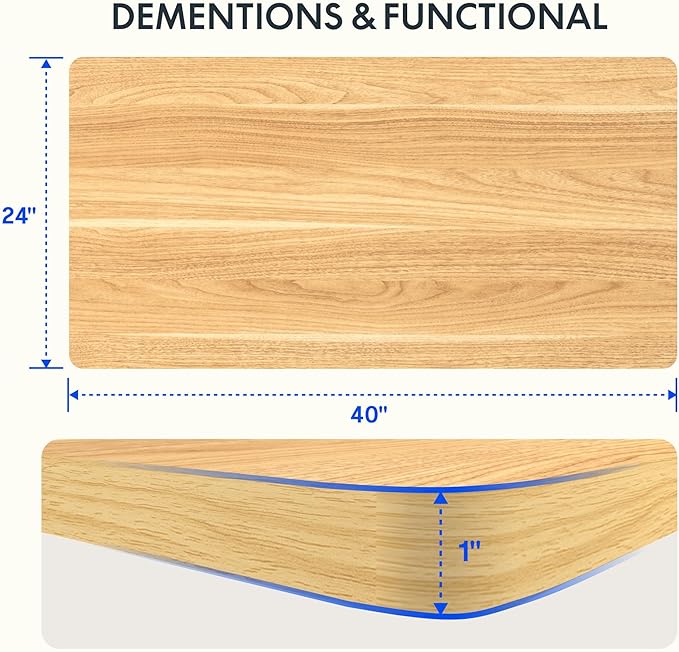 - AMPLE WHOLE-PIECE DESKTOP: With its one piece eco-friendly desktop, this standing desk provides plenty of room for your computer setup, documents, and accessories, creating a well-organized and productive work environment. Due to hand measurements, desktop dimensions may vary slightly by 0 to 1”.