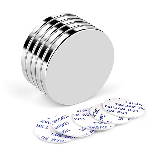 LOVIMAG Super Strong Neodymium Disc Magnets, Powerful Rare Earth Magnet with Double-Sided Adhesive for Fridge, DIY, Building, Scientific, Craft, and Office Magnets - 1.26 inch x 1/8 inch, Pack of 5