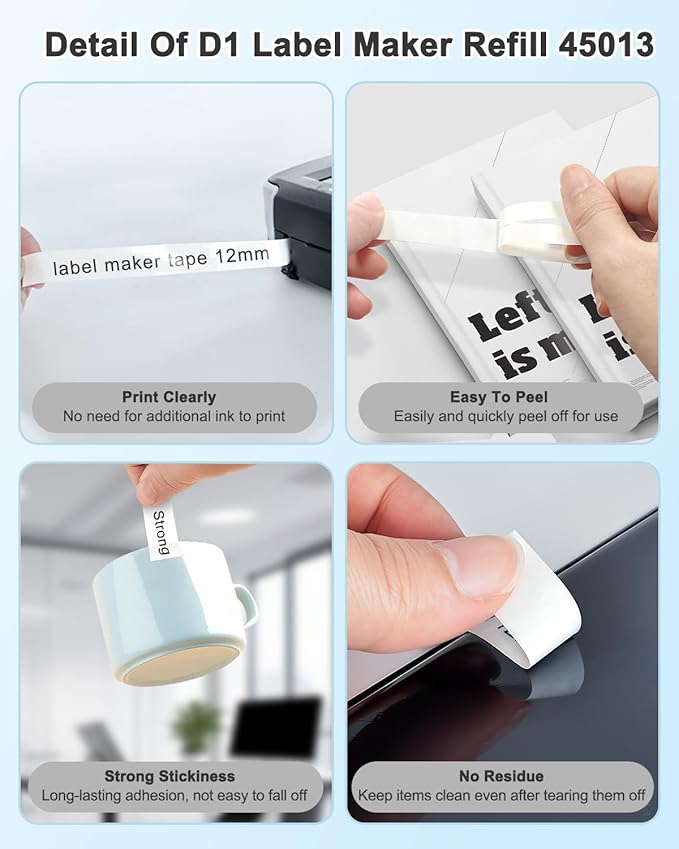 - Split Backing of d1 1/ 2 label tape for Easy Peeling and No Sticky Residue when Removed.