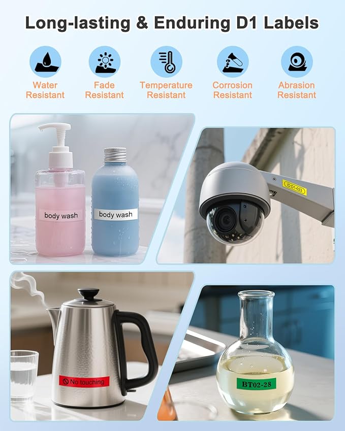 - Perfect for Indoor and Outdoor Use, best for sticking to plastic, paper, metal, wood, glass and ideal for labeling files, folders, shelves, tools, kitchen Items and so on. Help you organize your things efficiently. The plastic label tapes are great to print clearly and practical labels, the polyester material makes it more stronger than other similar labels.