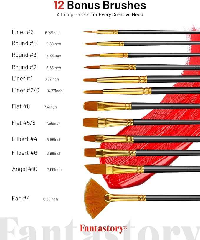 - 🎨[ Excellent Painting Set ]:This set offering a one-stop solution with premium paints and versatile brushes. It is cost-effective and easy to use. The cleverly designed brushes meet various stroke requirements, helping you create with precision. Whether you're an art student improving your skills or a hobbyist creating daily, you’ll enjoy a quality experience. The set comes in exquisite packaging, making it a perfect gift for the holidays.