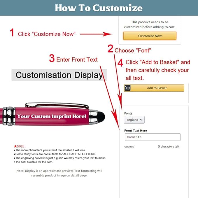- FREE PERSONALIZATION You can have up to 40 characters (including spaces) on each line, up to 2 customized lines are free. we use laser engraving technology to engrave the text on the pen without fading. As long as you click the "Customize" option, you can easily customize it. Beautiful appearance, suitable for gift.