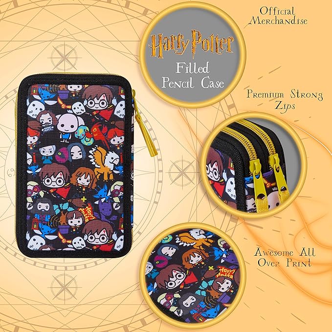 - Harry Potter filled double zip pencil case for kids, in multiple cool designs