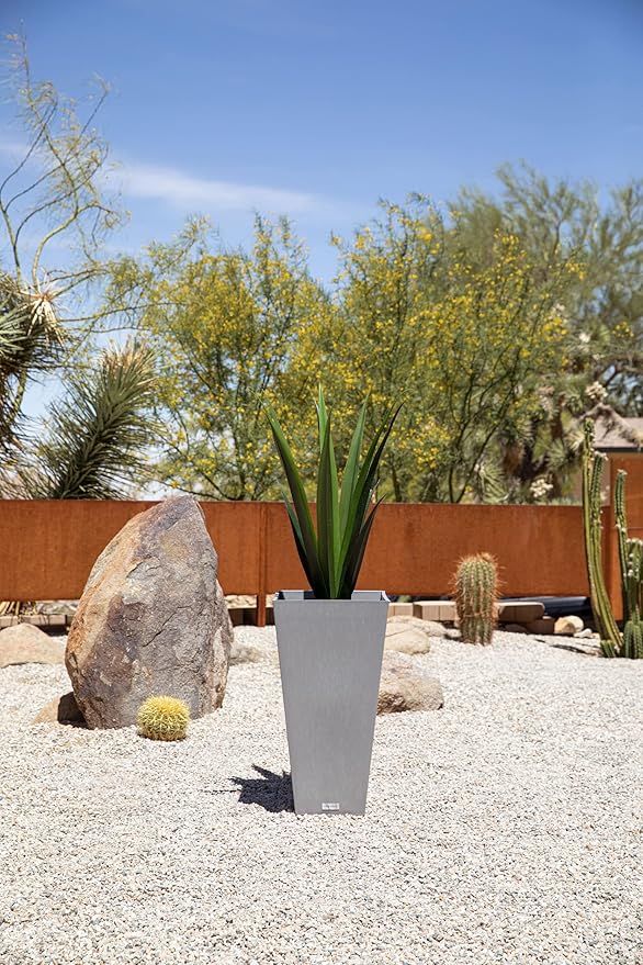 - GARDEN DECOR: Decorate your space with the Veradek Taper planter; Whether you use it as a patio, entrance or railing accent, this strong and sturdy yet lightweight contemporary garden container is the perfect fit with its sharp and modern appeal