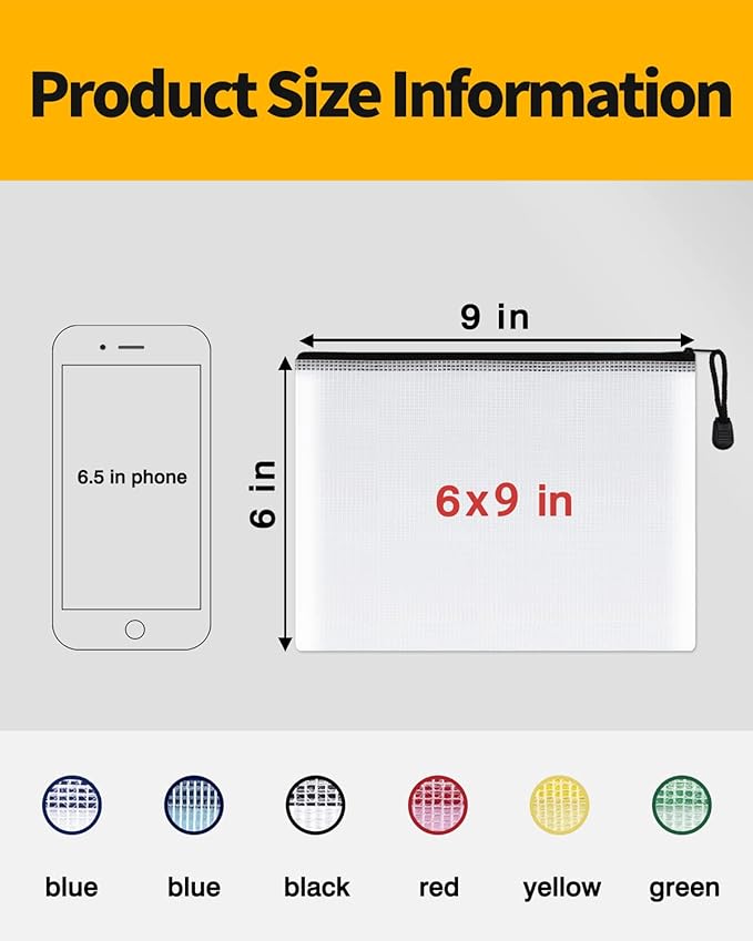 - PACKAGE CONTAINS: You will get a set of 18 Packs 6x9 inches black plastic zipper pouches for the most paper size of letter-size prints or smaller document storage. It can help you organize your miscellaneous items to meet your daily life and work. Manufacturer recommended age 3 years and up