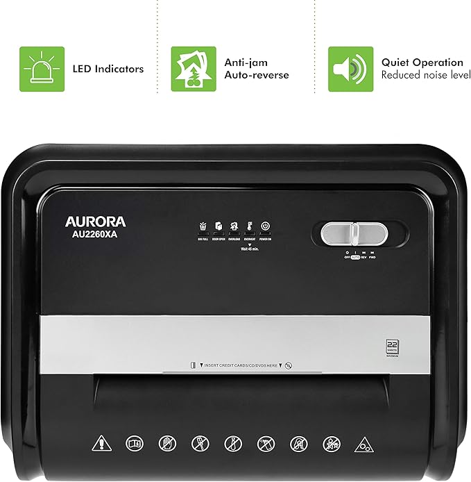Aurora AU2260XA Heavy Duty Anti-Jam 22-Sheet Crosscut Shredder/60 Min Run Time/ 7-Gallon Pullout Basket and Casters