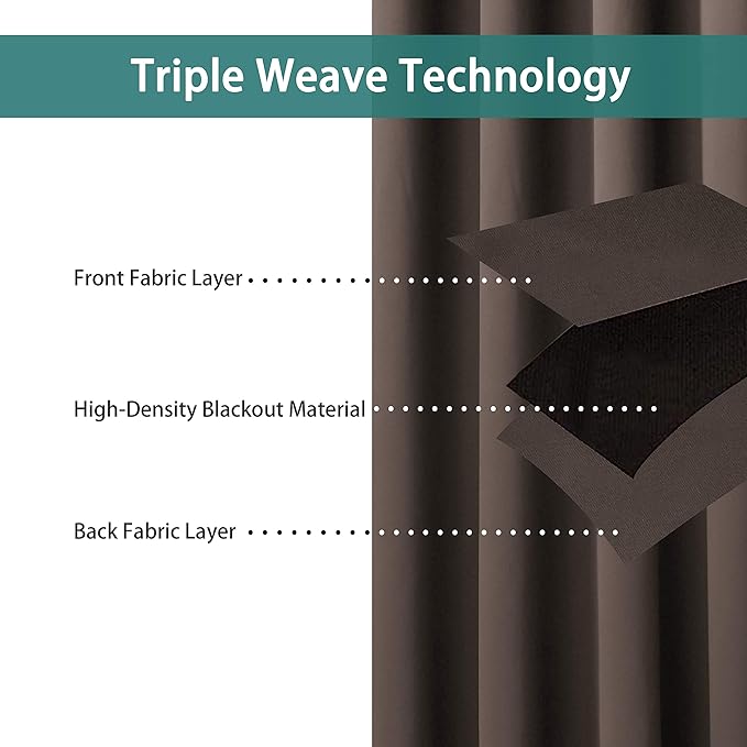 - PREMIUM BLACKOUT MATERIAL: Our room darkening curtain is made of 100% polyester fabric and have the same color with the front and back. Crafted in a certified STANDARD 100 by OEKOβTEX factory from a durable soft and thick triple weave blackout fabric which block out 90% above sunlight and UV rays. Darker colors work better.