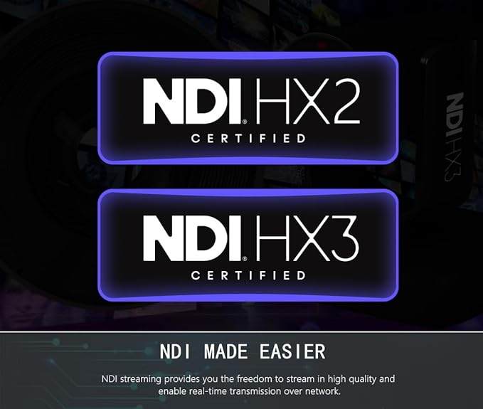 - πππππTHE OFFICIAL NDI HX2 NDI HX3 NDI PTZ CAMERA -- You can power, control, set up and preview this video camera by connecting 1 ethernet cable, avoid expensive cable runs. Compatiable with vMix, OBS, Zoom, Skype and other video conference software and video production software which supports NDI HX.