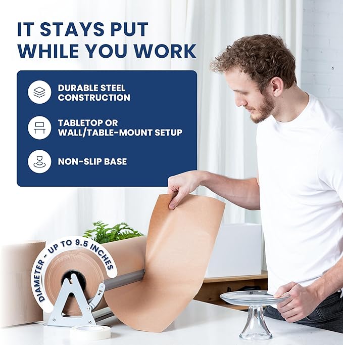 - Roll Compatibility: Fits rolls up to 36'' wide, 9'' diameter (around 1000ft); be sure to insert your paper with the loose end over the top; butcher paper, construction paper, brown paper, or craft paper may be used