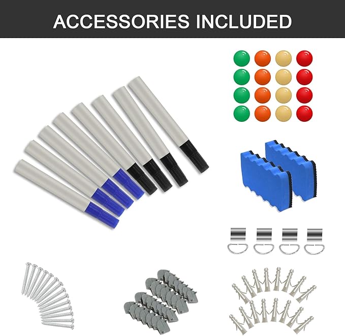 - EXTRA BONUS: The magnetic whiteboard comes with 8 markers, 2 erases and 16 magnetic nails.
