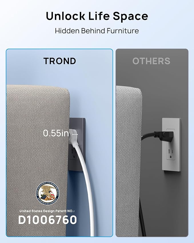 - 【Right Angled Flat Plug & Wall Mountable】The low-profile space-saving 45° angled flat plug doesn’t block the bottom receptacle. 4 Screw-mounting tabs allow you to securely install this power strip surge protector in many applications, including the entertainment center, home theatre, workstation, behind the desk, dorm room, house room, garage, desktop, craft area, etc.