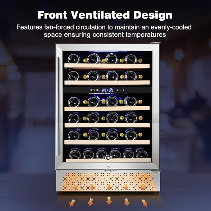 Tylza 24 Inch Dual Zone Wine Cooler Refrigerator, 46 Bottle Built-in or Freestanding, 24'' Wine Fridge with Stainless Steel & Professional Compressor and Temperature Memory Function