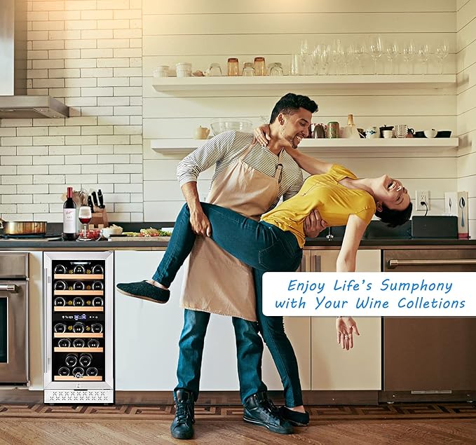 - 🍷【Stable Dual Zone Wine Cooler】This 15 inch wine cooler has adopted the dual-zone design of temperature according to the conditions of the wine cellar. Upper zone 40-55°F, lower Zone 55-65°F to make it suitable for storing different wines. There are a thermostat an automatic defrosting function and cold air circulation on this wine cooler refrigerator, which ensures wine fridge keeps a constant temperature setting, and effectively extend and preserve the taste of wine.