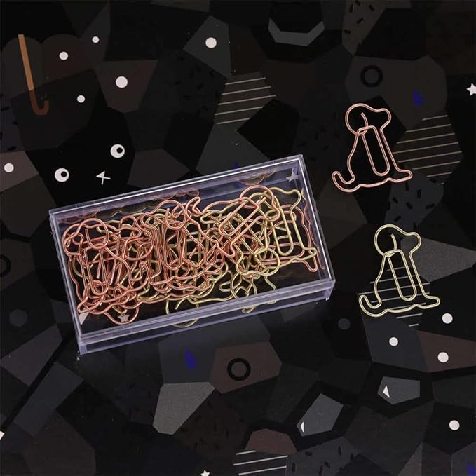 OWLFAVO 30pcs Puppy Dog Shape Paper Clips with Clear Box, Rose Gold and Yellow Gold, Funny Cute Paperclips Bookmarks Planner Clips for Fun Office Supplies School Gifts Wedding Decoration