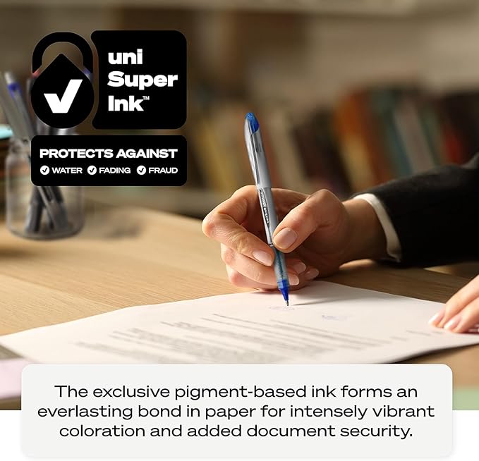 - Exclusive pigment-based ink forms an indelible bond in paper, for intense coloration and document security