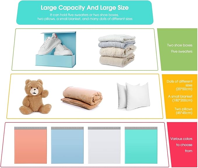 - 【Multiple Colors and Sizes】The shipping packages offer a variety of colors and sizes. You can select the perfect size that suits your items and opt for your favorite color. Choosing the color you love can make you happy, while selecting the appropriate size of the polymailer bag can minimize waste and promote environmental friendliness.