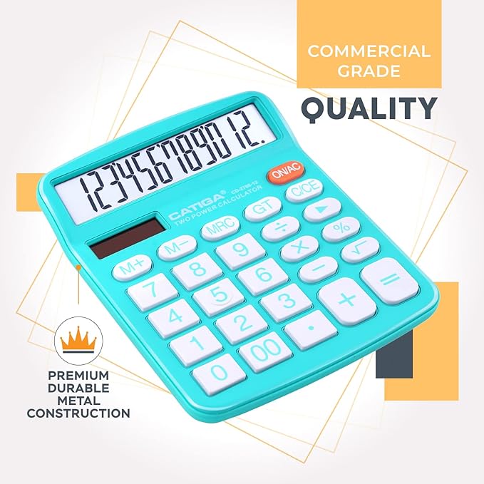 CATIGA Desktop Calculator 12 Digit with Large LCD Display and Sensitive Button, Solar and Battery Dual Power, Standard Function for Office, Home, School, CD-2786