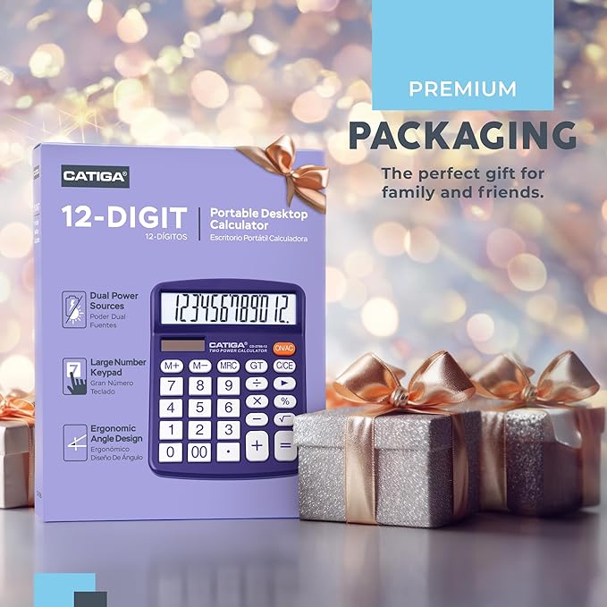 Desktop Calculator 12 Digit with Large LCD Display and Sensitive Button, Solar and Battery Dual Power, Standard Function for Office, Home, School, CD-2786 (Purple)