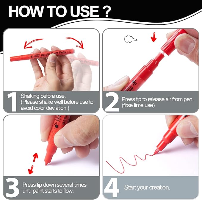 - OUTSTANDING AFTER-SALES SERVICE: Every paint marker is independently tested and selected to ensure the performance you expect. Enjoy peace of mind with our 24/7 customer support. We are committed to ensuring your complete satisfaction with prompt assistance for any concerns