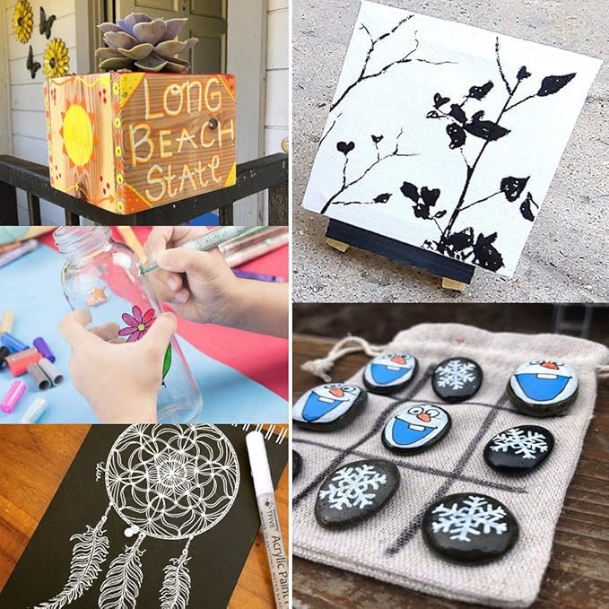 - WORKS ON ALMOST ANY SURFACES: The white paint pens works on almost any surfaces such as rock, canvas, wood, metal, glass, ceramic, plastic, tire, etc. They are the best tool for creativities