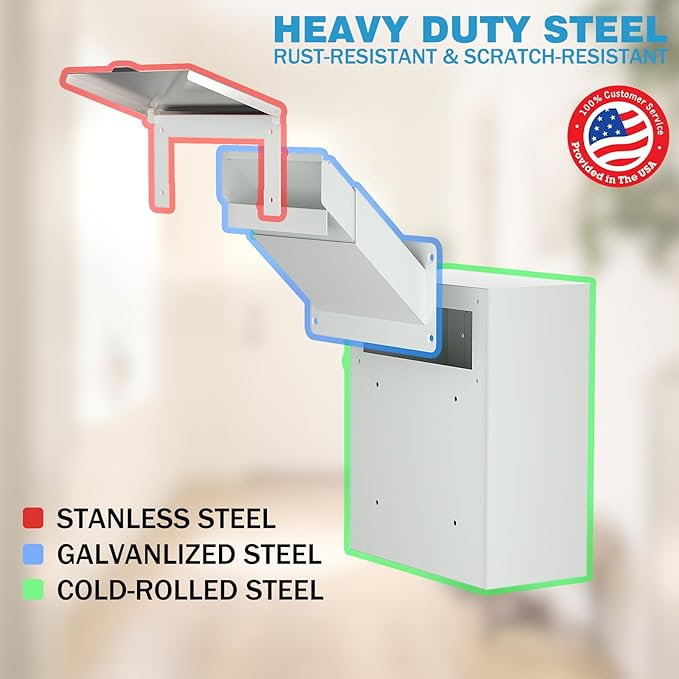 - HEAVY DUTY DROP BOX: POCHAR through wall drop box crafted from stainless steel cover, galvanized steel chute, and cold rolled steel box, ensuring rustproof and resists wear for long-lasting and durable, ideal as a residential mailboxes or a commercial mailboxes. The stainless steel rainproof cover can prevent rainwater from entering to keep items dry and clean.