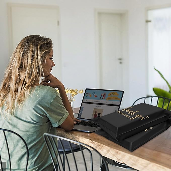 JinRuiKJ Thank You Poly Mailer 10x13 Inch 100 PCS, Shipping Bags for Clothing, Packaging Bags for Small Business, Strong Adhensive, Waterproof and Tear-Resistant Mailing Envelopes, Black