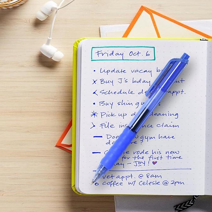 - GEL INK PEN- The gel ink pen with blue fast dry ink, smooth writing, no smear, no skip, no blob. Vivid and fresh ink delivers a fluent writing experience, and durable for long time. Favorite to left-handed user.