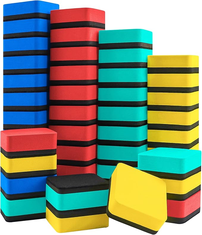 Mini Dry Erase Erasers, IHPUKIDI 48 Pack Magnetic Whiteboard Dry Erasers Chalkboard Cleaner Wiper for Kids and Classroom Teacher Supplies, Home and Office (2 x 2 Inch)