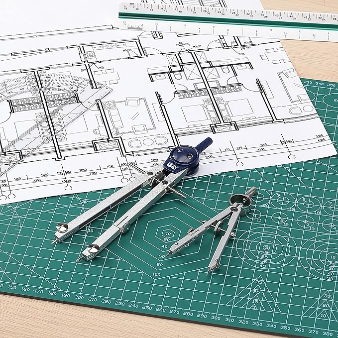 - Precision geometry compass with spring bowhead and center wheel prevents unintentional leg movements