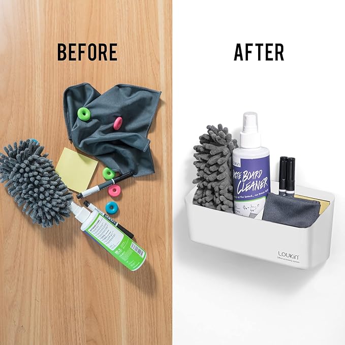 loukin Magnetic and Adhesive Marker Holder, Dry Erase Accessory Tray, Magnetic Storage Organizer for Whiteboard, Glass or Refrigerators (White)