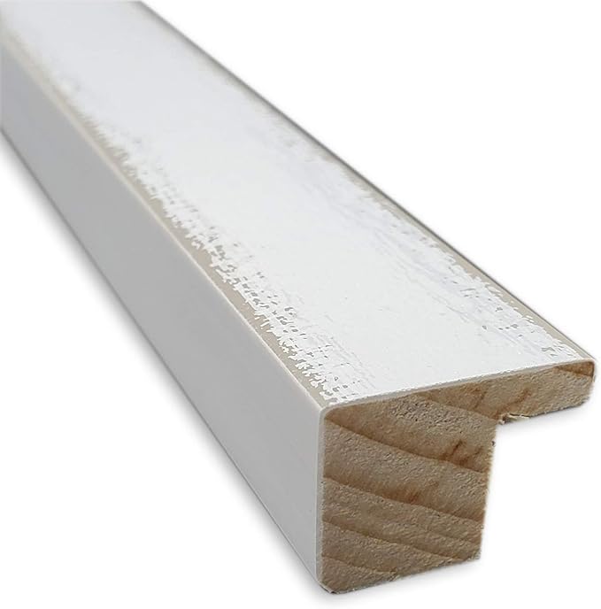 - 100% REAL WOOD FRAME DETAILS: The Breeze Distressed White Frame is a rustic, white wood frame with a weathered finish across its flat profile and a satin white outer edge. The frame is 0.75 in. wide and stands 0.5 in. off the wall.
