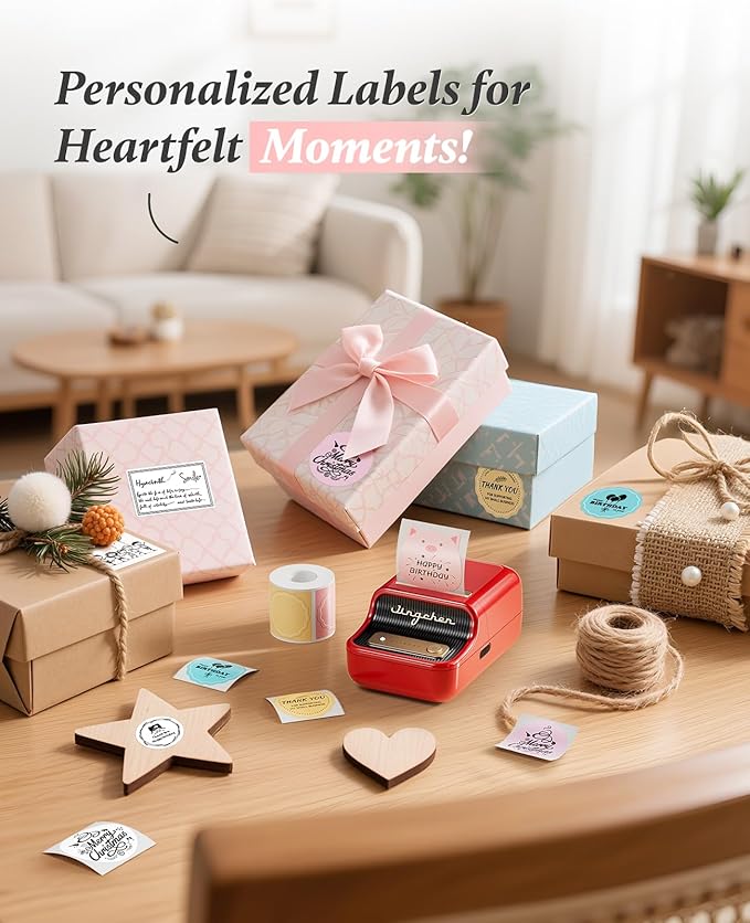 - 【Widely Use】 Can use variety styles of thermal label tapes, such as white, color, cable cord labels and rare transparent labels. It's ideal present for labeling Chritmas/Mother's day/Father's day/New Year's gift for kids family and friends.valentines day gifts for him