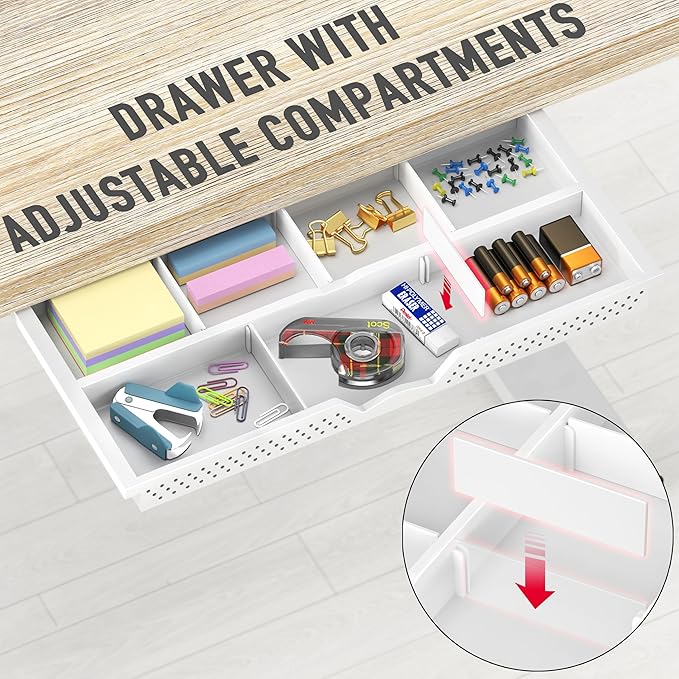 - Integrated Cable Management , Hooks and Drawer: Includes a built-in cable tray to neatly organize cords and reduce desktop clutter, maintaining a clean and professional workspace.