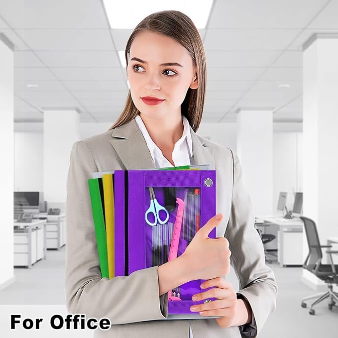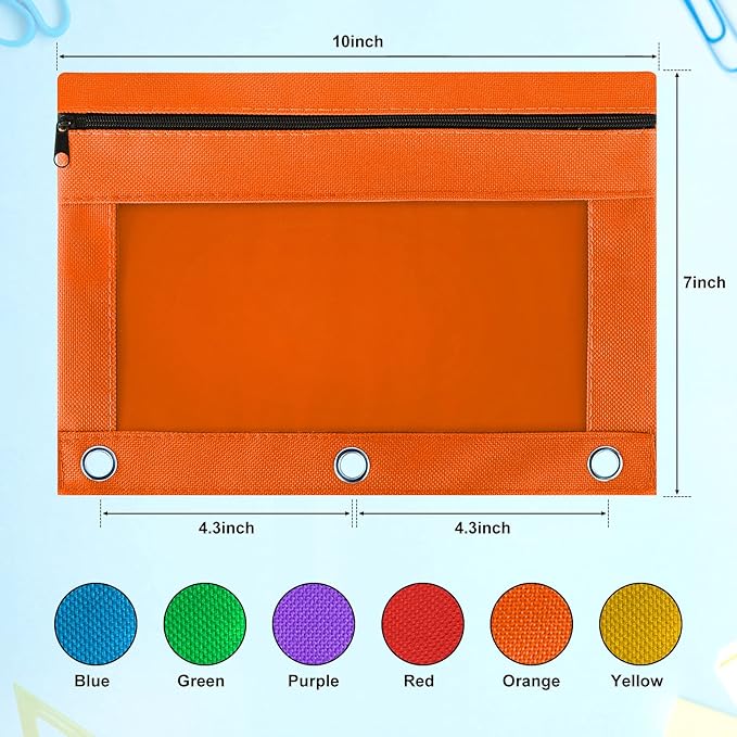 - Apposite Size - Each 3-ring binder pouch is 9.8 inches x 7.1 inches, the zippered pencil bags have 3 copper holes (The distance between the holes is 4.3 inches), suitable for the standard 3-ring binders, and can be placed in folders. Available in bulk back-to-school and office supplies to save your costs. And you can keep it in your binder without losing it and there are no loose items in your backpack.