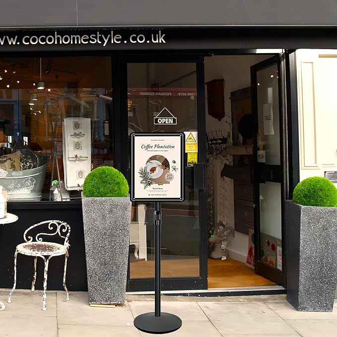- ■ Heavy Duty Pedestal Sign Stand: 7lbs heavy duty cast iron base increase the stability, aluminum poster frame and stainless steel stand pole sturdy & stable.