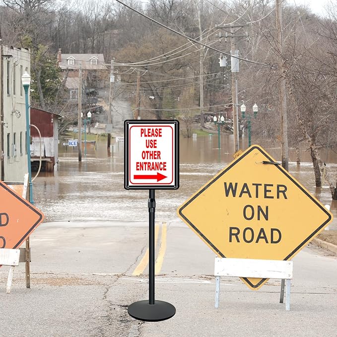 - √ Heavy Duty Pedestal Sign Holder Stand: 7.2lbs heavy duty cast iron base increase the stability, aluminum poster frame and stainless steel stand pole sturdy & stable.