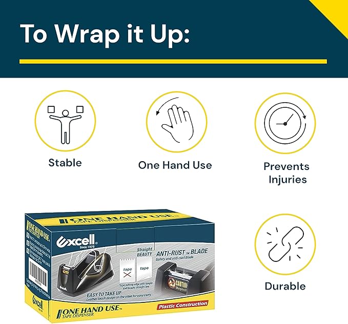 Excell EX-11419BK Desk Tape Dispenser (1" core) with Non-Skid Base, Desktop Tape Dispenser Design for Home, Office, Gift Store and Wrapping Purpose (1)