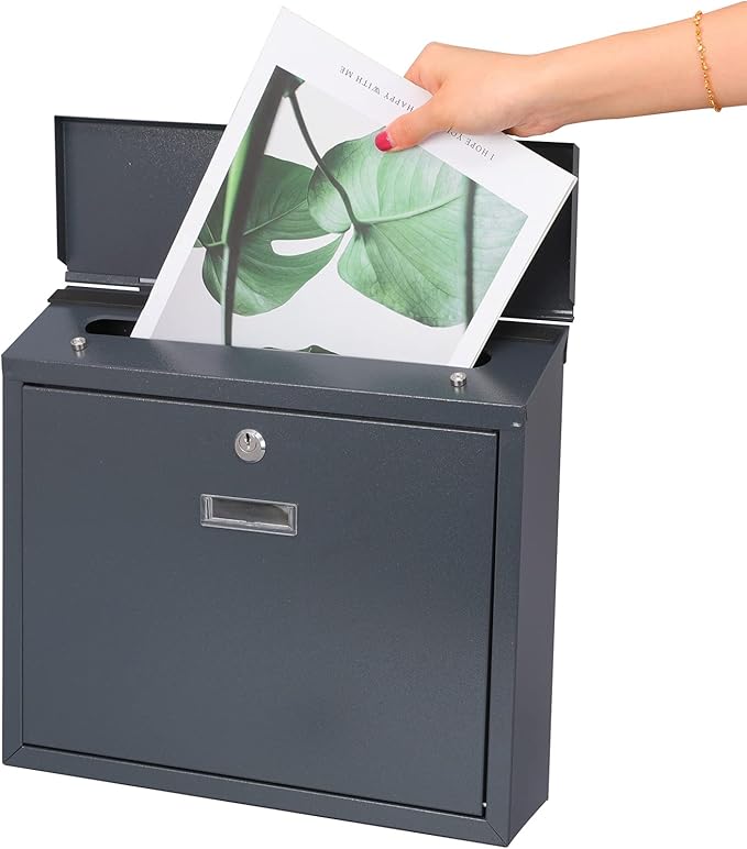 - EASY INSTALLATION - Mail Drop Box has pre-drilled holes, mounting screws, gaskets, wall anchors, everything you need for installation is in the box. Note: The mailbox has seams and will seep water during heavy rain, so it is recommended to install it indoors or outdoors with a sheltered shed.