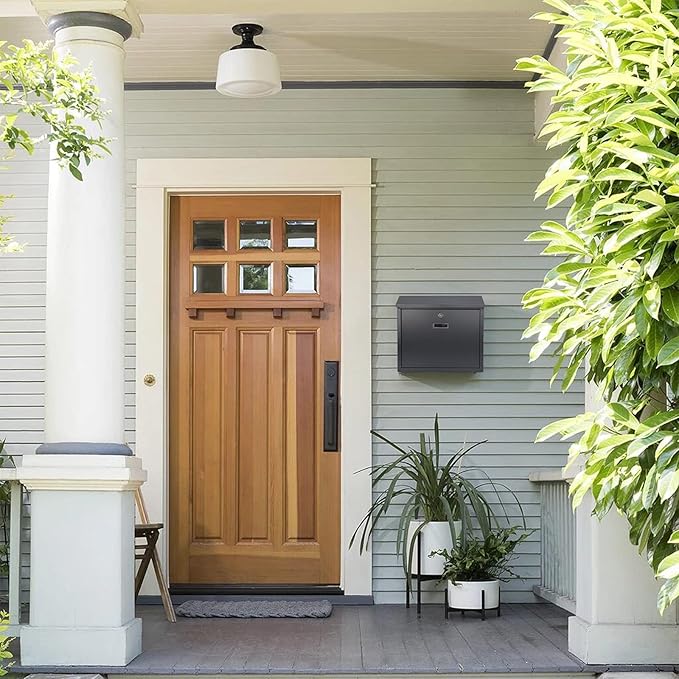 - DURABLE MATERIAL - Made of solid and sturdy metal, provides high security protection and safety storage for your mail. Powder coated protect mails from heavy rain. Surface all spray model or baking varnish disposal, beautiful and modern, endure cauterization.