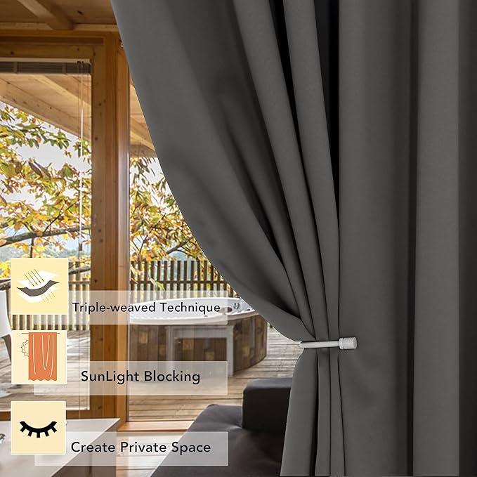 - PREMIUM BLACKOUT MATERIAL: Our room darkening curtain is made of 100% polyester fabric and have the same color with the front and back. Crafted in a certified STANDARD 100 by OEKOβTEX factory from a durable soft and thick triple weave blackout fabric which block out 90% above sunlight and UV rays. Darker colors work better.