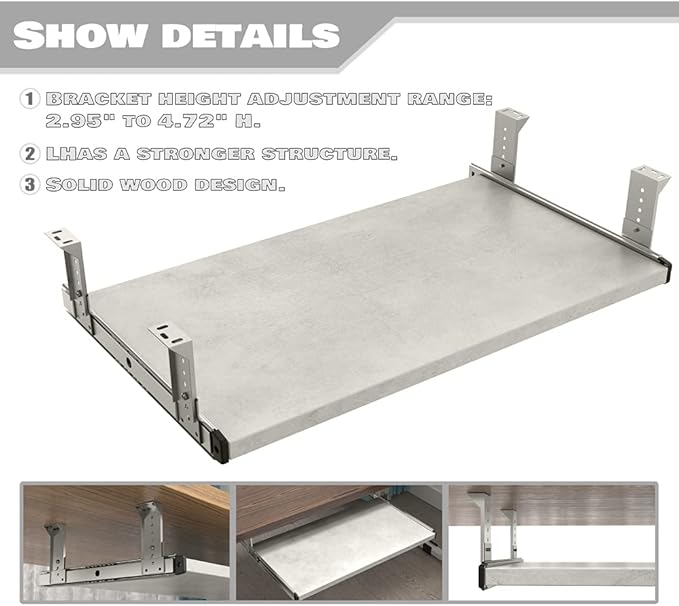 FRMSAET Furniture Accessories Office Product Suits Hardware 20/24/30 inches Keyboard Drawer Tray Wood Holder Under Desk Adjustable Height Platform(24 inches, Gray Rock)