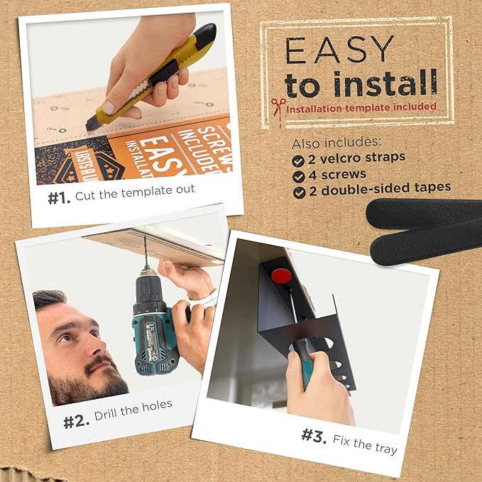 - BETTER DESIGN: Your new wire hider for desk works great even with desks with very little overhang. The cable rack has a unique design allowing for mounting directly through the tray. Use the provided template to drill pilot holes before installing screws.