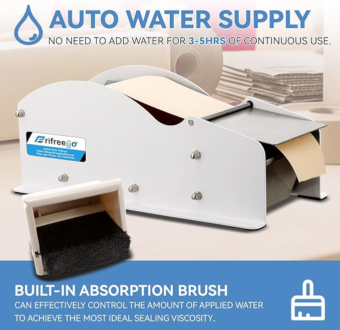 - Easy Manual Device- Unlike complicated electric device, the manual water activated tape dispenser does not have a lot of troublesome operation buttons. You could start your work just after adding water and install the tape. The tape can be pulled to any length you want.
