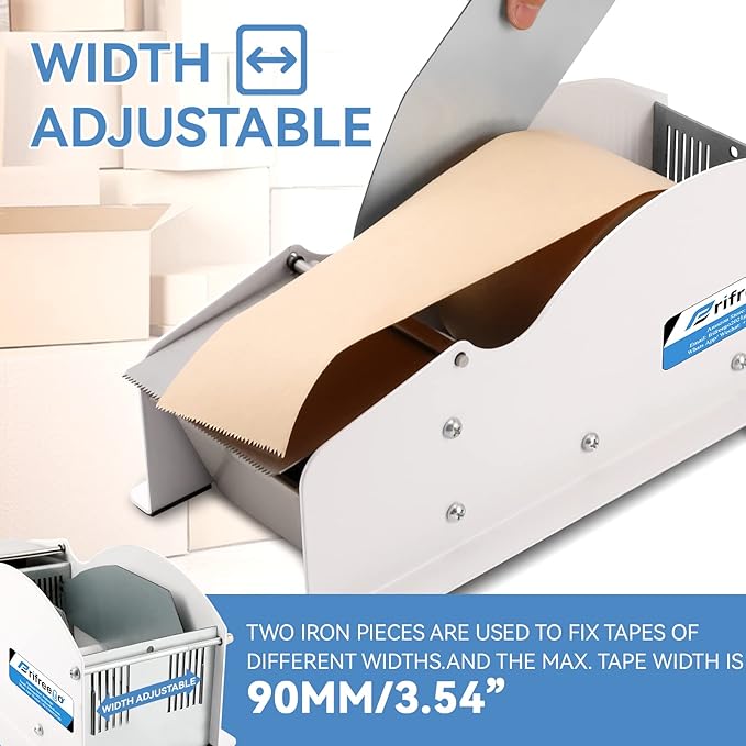 Water-Activated Tape Dispenser, Manual Width-Adjustable Kraft Gum Tape Dispenser for 0.98-3.54" Wide Tape, All-Body Steel Packing Tape Dispenser, Stable and Durable