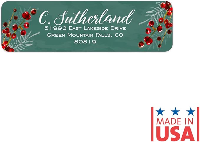 Pine and Berry Rolled Address Labels/Roll of 250 Personalized Return Address Labels/Designer Return Address Stickers in Elegant Plastic Dispenser