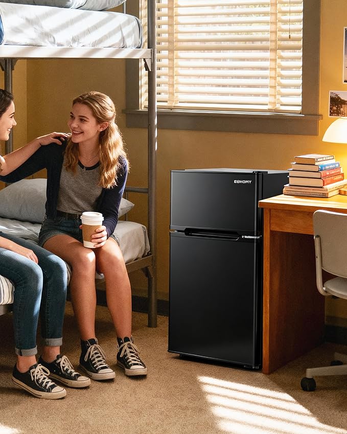 EUHOMY Mini Fridge with Freezer, 3.2 Cu.Ft Mini Refrigerator, Dorm Fridge with 2 Door For Bedroom/Apartment/Office-Food Storage Cooling Drink, Black
