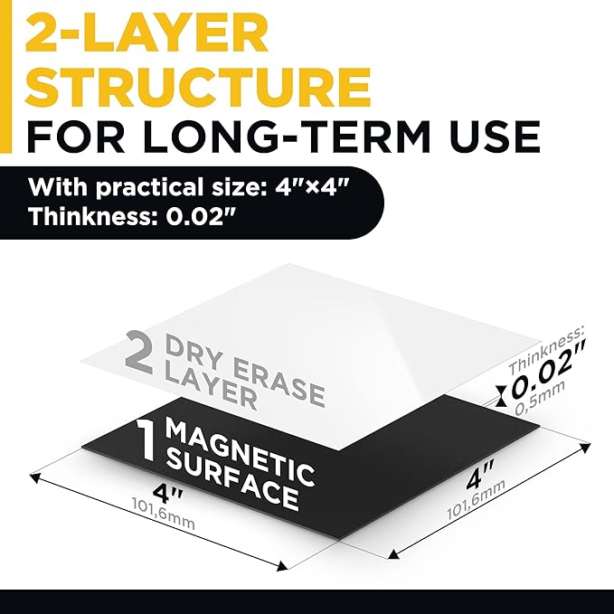 Dry Erase Magnetic Labels - Reusable Sticky Notes - Magnetic Notepads for Refrigerator - Dry Erase Magnetic Sheets - Blank Magnet Stickers to Write On - Magnets for Whiteboard Classroom Fridge