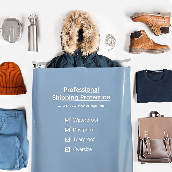 - Large poly mailers - Poly mailers are great for shipping light and less fragile products. These large poly mailers are perfect for shipping a variety of items such as apparel and accessories, shirts, shoes, jeans, pants, jackets, coats, books, cosmetics, and much more.